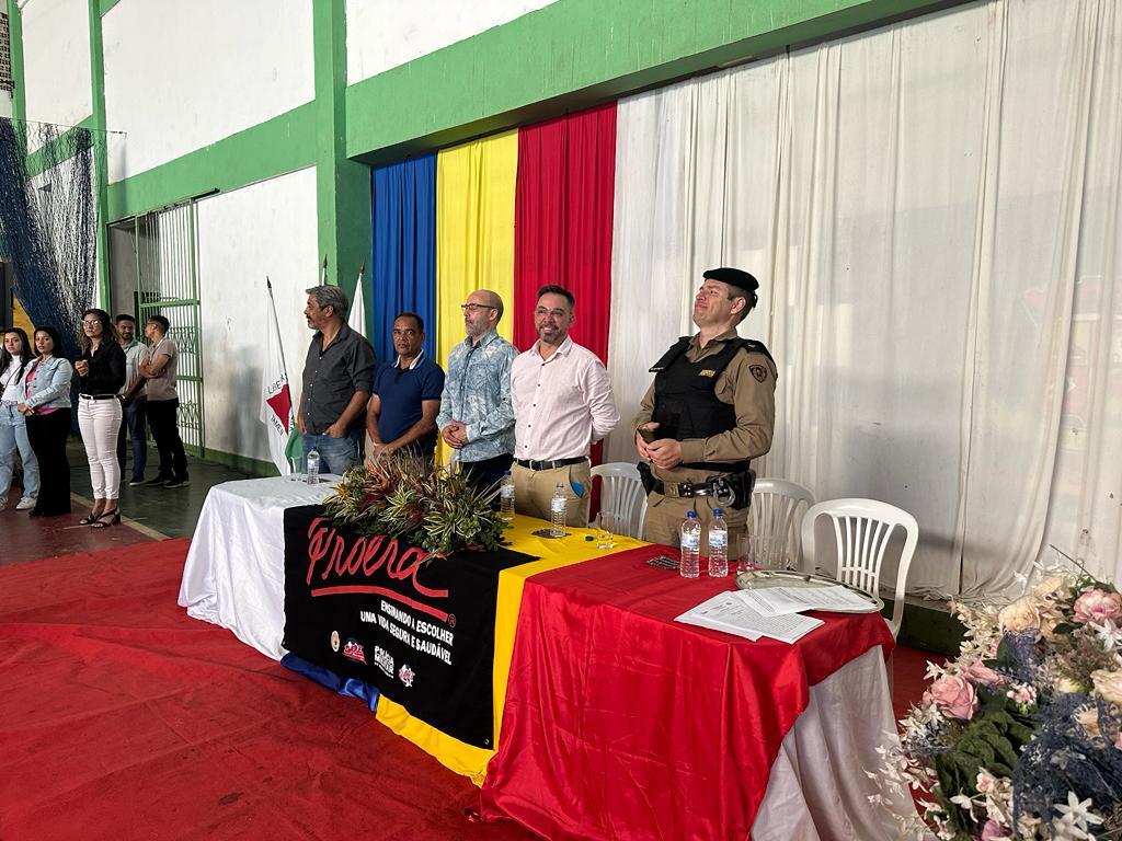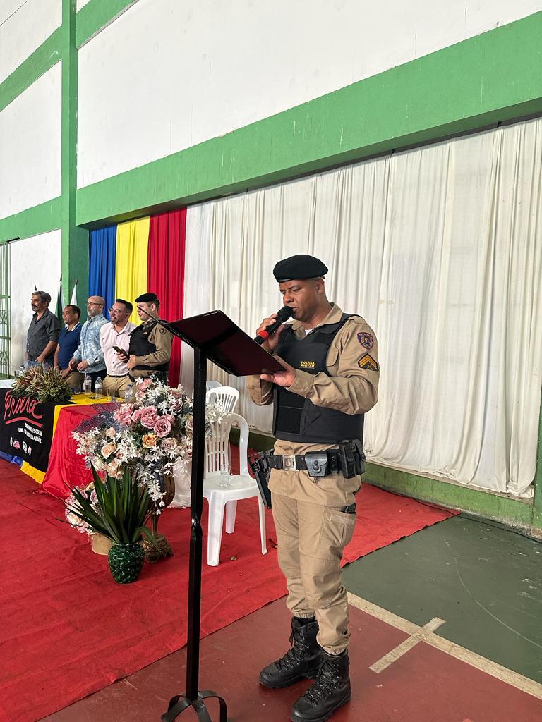 O evento ainda contou com a participação do Comandante do 4º Pelotão – 7ª Cia PM Ind Tenente Máximo, a Secretaria de Educação Fátima Gaia, o Prefeito Drº Renilton e seu vice Andinho, Secretário de Administração Fabricio Canguçu, o Presidente da Câmara Municipal de Mateus Leme Chico da Venda e alguns vereadores.