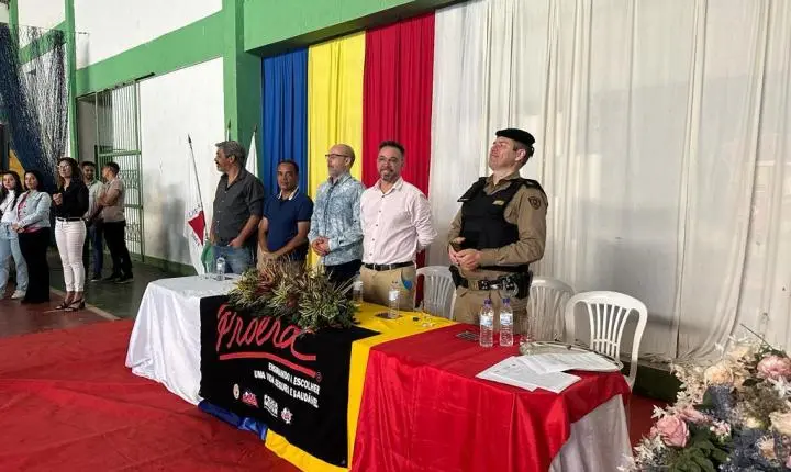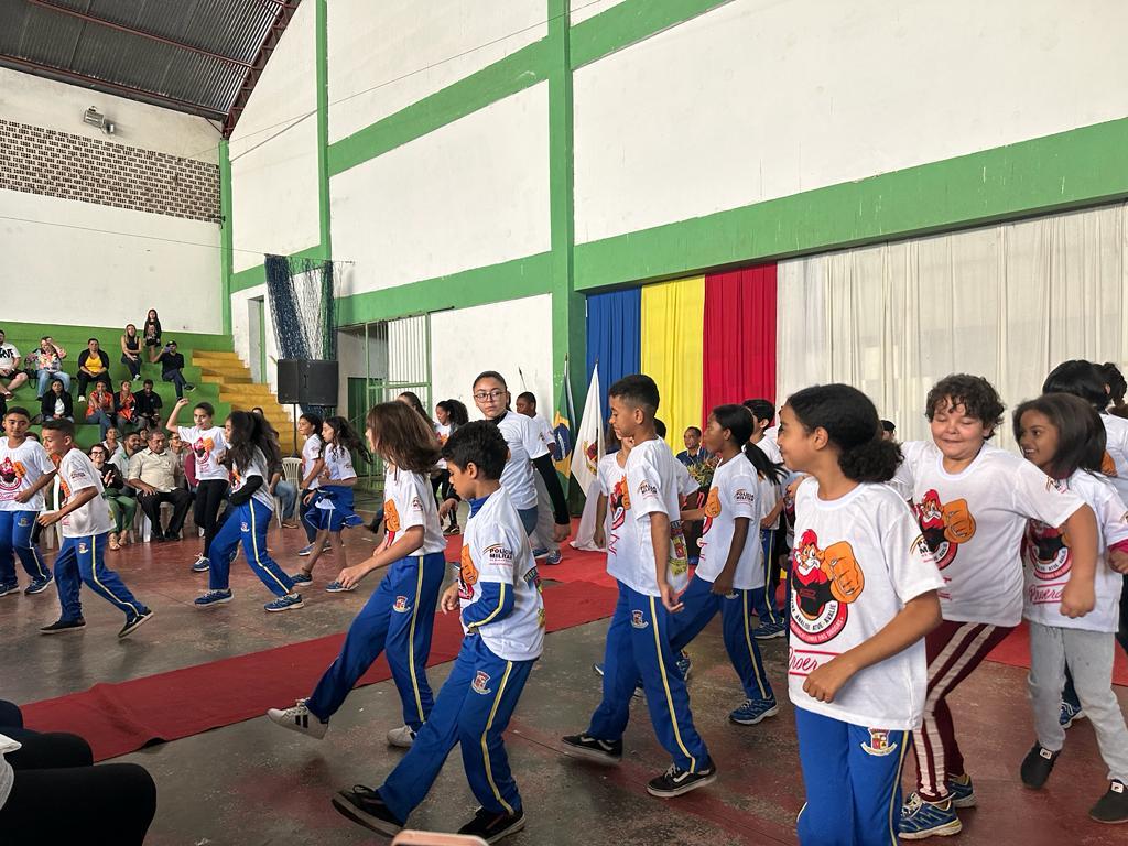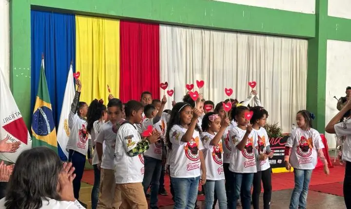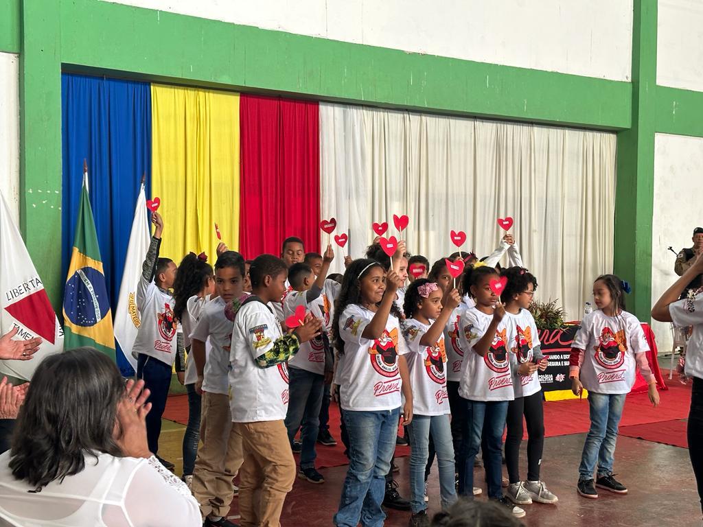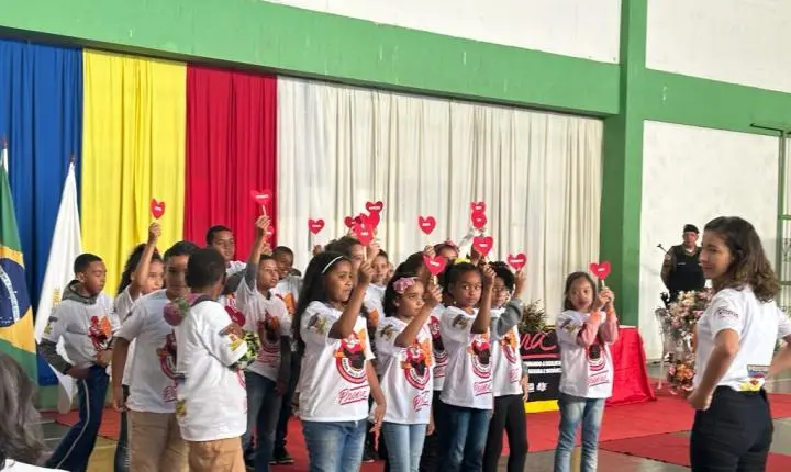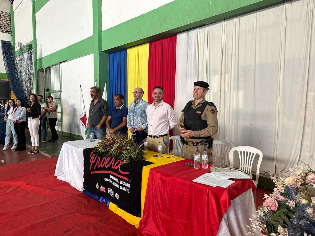 Os alunos das Escolas Municipais da cidade de Mateus Leme receberam nesta quinta-feira (13/7) os diplomas de formatura do PROERD, programa social da Polícia Militar de combate às drogas.