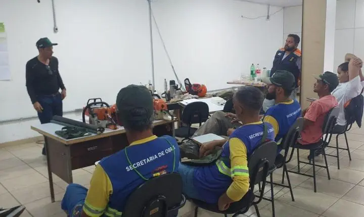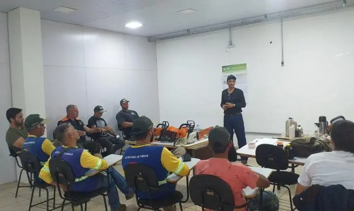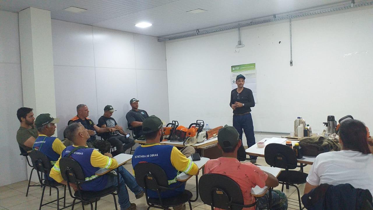 As equipes da Defesa Civil de obra da cidade de Mateus Leme participaram de um treinamento de operação e manutenção de motosserra entre os dias 15,16 e 17 de agosto.