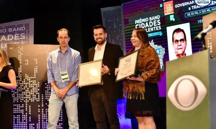 Na noite desta última quarta-feira (19), o prefeito Guto Resende recebeu com honra o Prêmio Band Cidades Excelentes na categoria Governança, Eficiência Fiscal e Transparência, durante uma cerimônia realizada na Câmara de Dirigentes Lojistas de Belo Horizonte (CDL/BH). São Joaquim de Bicas foi um dos três municípios mineiros indicados na categoria para cidades com população entre 30 mil e 100 mil habitantes.