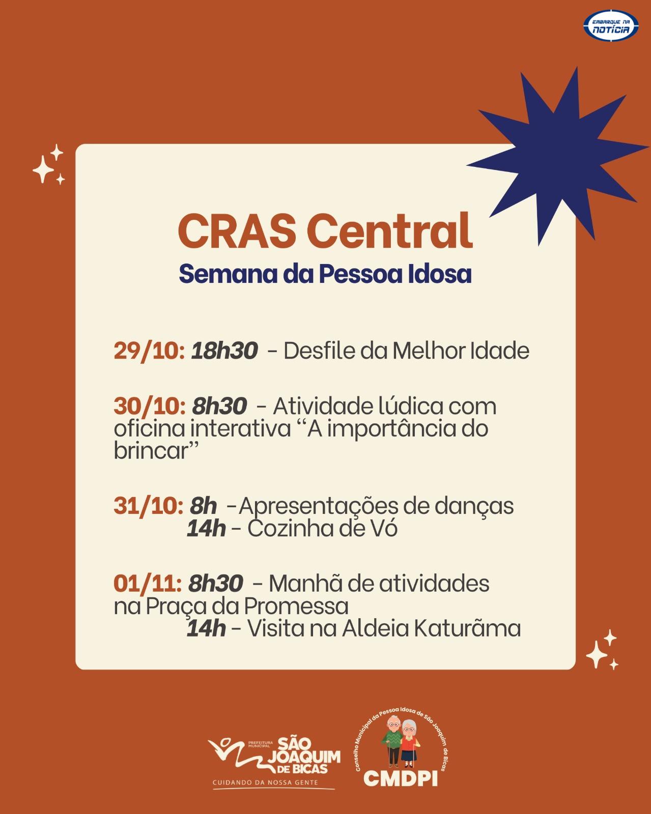 Confira a programação que vai até a próxima sexta-feira (1º), nas três unidades do CRAS da cidade