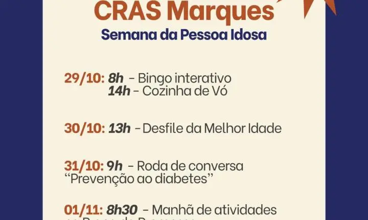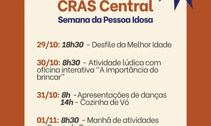Serão realizadas apresentações de dança, oficinas, brincadeiras, bingo, desfiles e uma visita especial à aldeia indígena da cidade, além de muita diversão e interação entre os participantes. O evento é aberto a todas as pessoas idosas da cidade. A programação segue até a próxima sexta-feira (1º). A iniciativa busca valorizar e demonstrar o carinho e respeito pelos idosos.