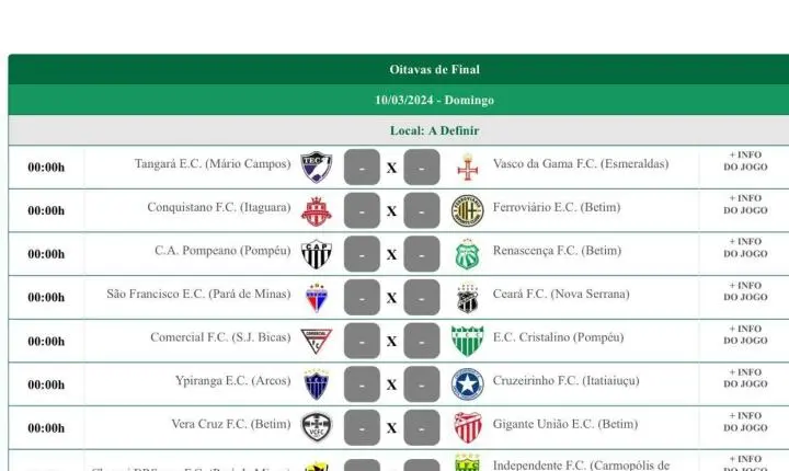 Segue como ficou os confrontos das oitavas de final para o próximo final de semana.